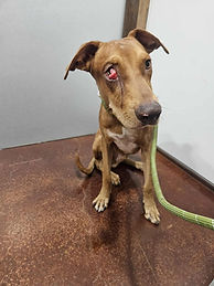We pulled Rusty (before and after pictures below) from a TX shelter's kill list and took him right into surgery to remove the massive growth in his eye. Rusty is fully healed now and his biopsy results came back as benign and we were ecstatic!